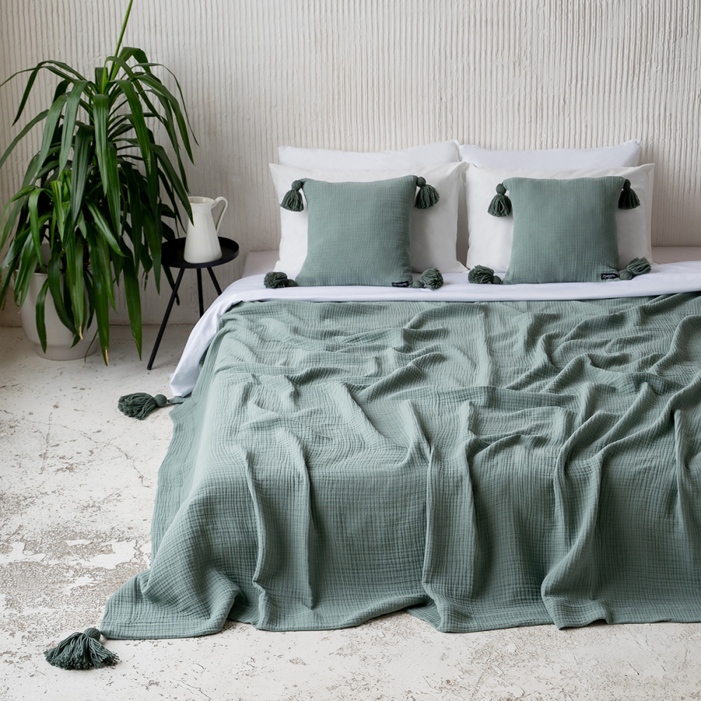 Покрывало из муслина с декоративными элементами. Состав - 100% хлопок.