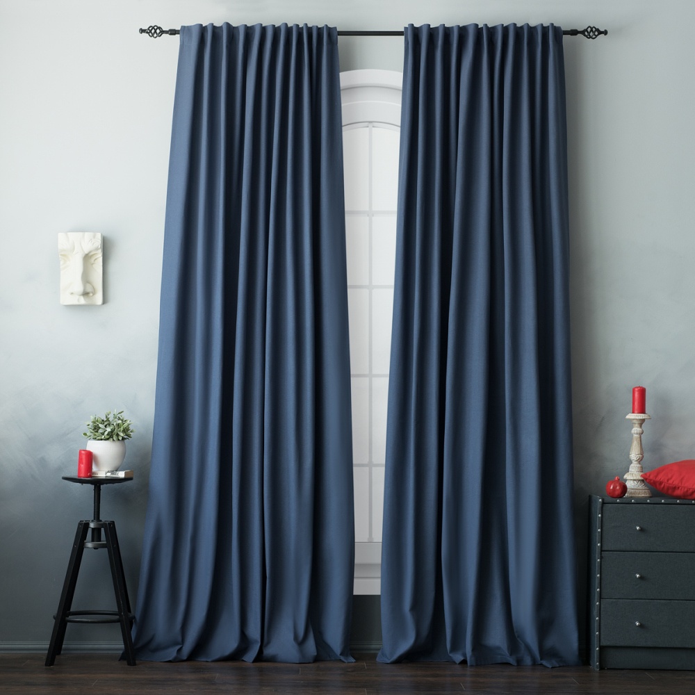 Комплект штор на универсальной шторной ленте из натуральной портьерной ткани. Состав - 65% Хлопок/35% полиэстер.