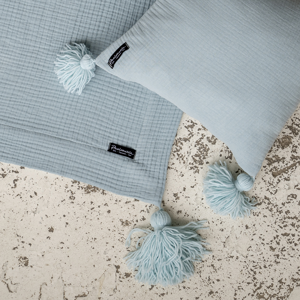 Декоративная наволочка из четырехслойного муслина с декоративными кисточками. Состав: 100% хлопок. Производство: Россия