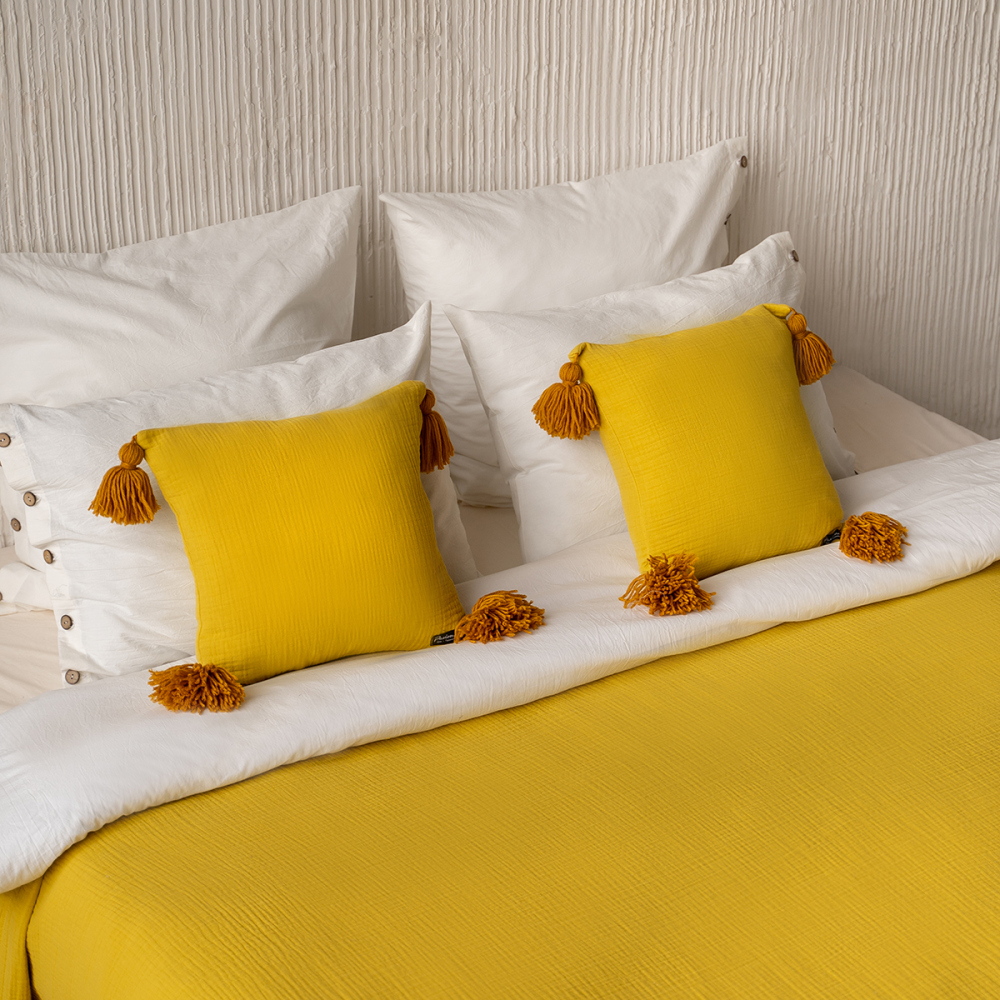 Декоративная наволочка из четырехслойного муслина с декоративными кисточками. Состав: 100% хлопок. Производство: Россия