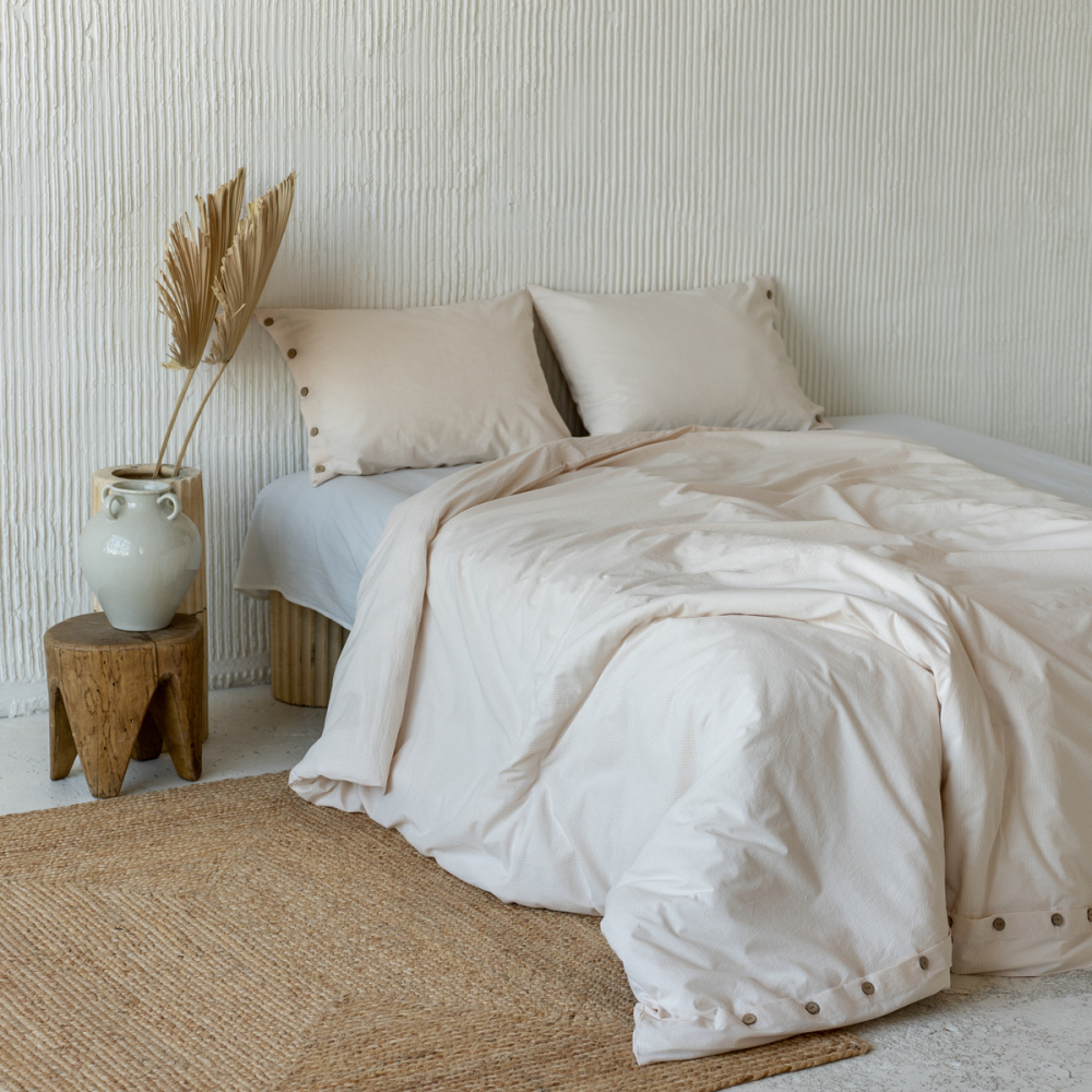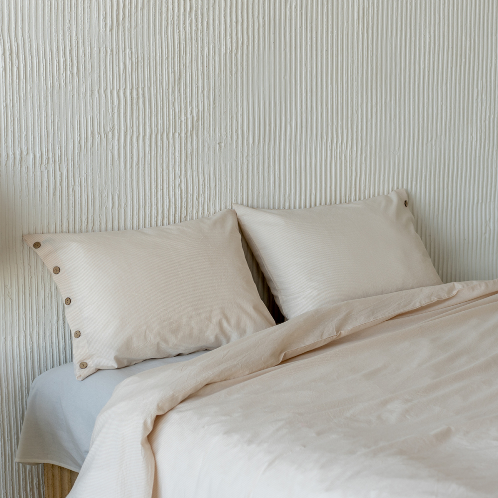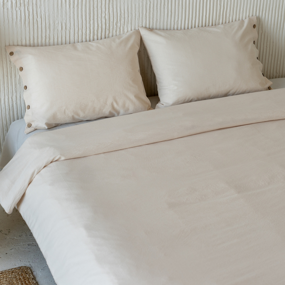 Копплект постельного белья из натуральной однотонной ткани. В комплект входят наволочки и пододеяльник на пуговицах. Комплектность зависит от размера изделия. Материал ткани - вареный хлопок, состав - 100% хлопок, плотность ткани - 120 г/м2.